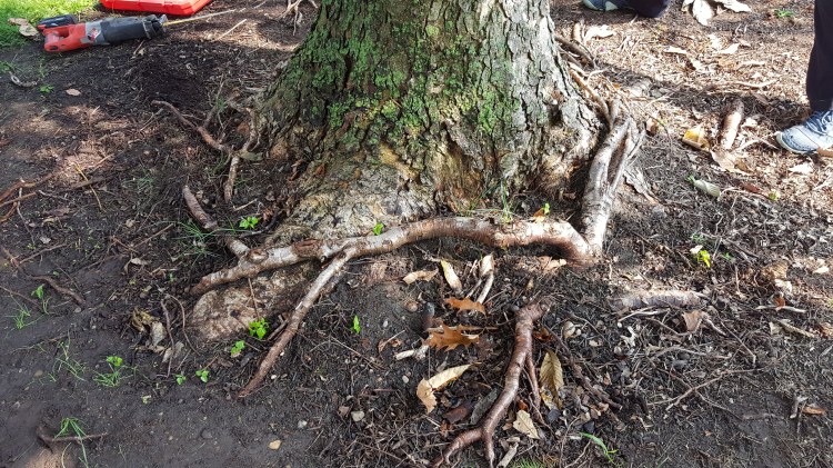 Roots prefer to be close to the soil surface in order where there is more air and water. When trunk flares are buried under mulch, some roots will wrap around other tree parts, choking them off.